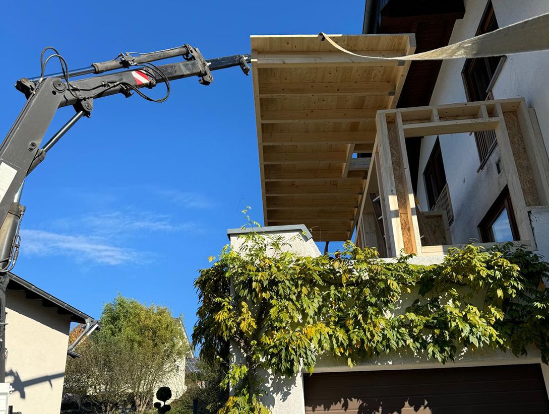 Ein Anbau dient zur Wohnraumgewinnung. Durch den modernen Holzbau können Anbauten anhand von modernen Programmen und CNC Maschinen passgenau umgesetzt werden. Die höchste Anforderung bei einem Anbau ist meistens der Zeitfaktor, da Gebäude, die vergrößert werden sollen, meist zeitgleich bewohnt sind. Dadurch entsteht ein sehr kurzes Zeitfenster, in dem der Bau oder das Dach offen sein darf. Langwierige Arbeiten, wie zum Beispiel mauern oder betonieren haben den Nachteil, dass der Bau zu lange offensteht. Durch das Vorfertigen von den Holzelementen kann die Zeitspanne des offenen Baus/Daches enorm verringert werden, da die Holzbauelemente vorab gefertigt werden können und als Fertigelemente schnell vor Ort montiert werden können.