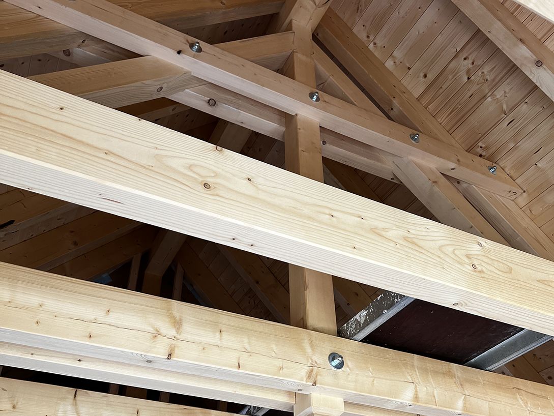 Ziel ist es, das optimale Verhältnis zwischen der Optik nach außen, der Statik sowie der Funktionalität im Dachbereich herzustellen. Mit der Fertigstellung des Dachstuhls wird der Rohbau abgeschlossen und das Gebäude in den nächsten Bauabschnitt übergeben.